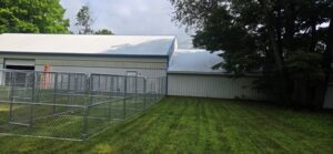 We are almost done with our first new addition at Green Valley Kennels. The 10 new exterior kennels are almost done. We are installing 10 10 x 10 enclosed kennels to allow all dogs in our care ample time out side in the fresh air. Kennels will be completed by the end of the week.
